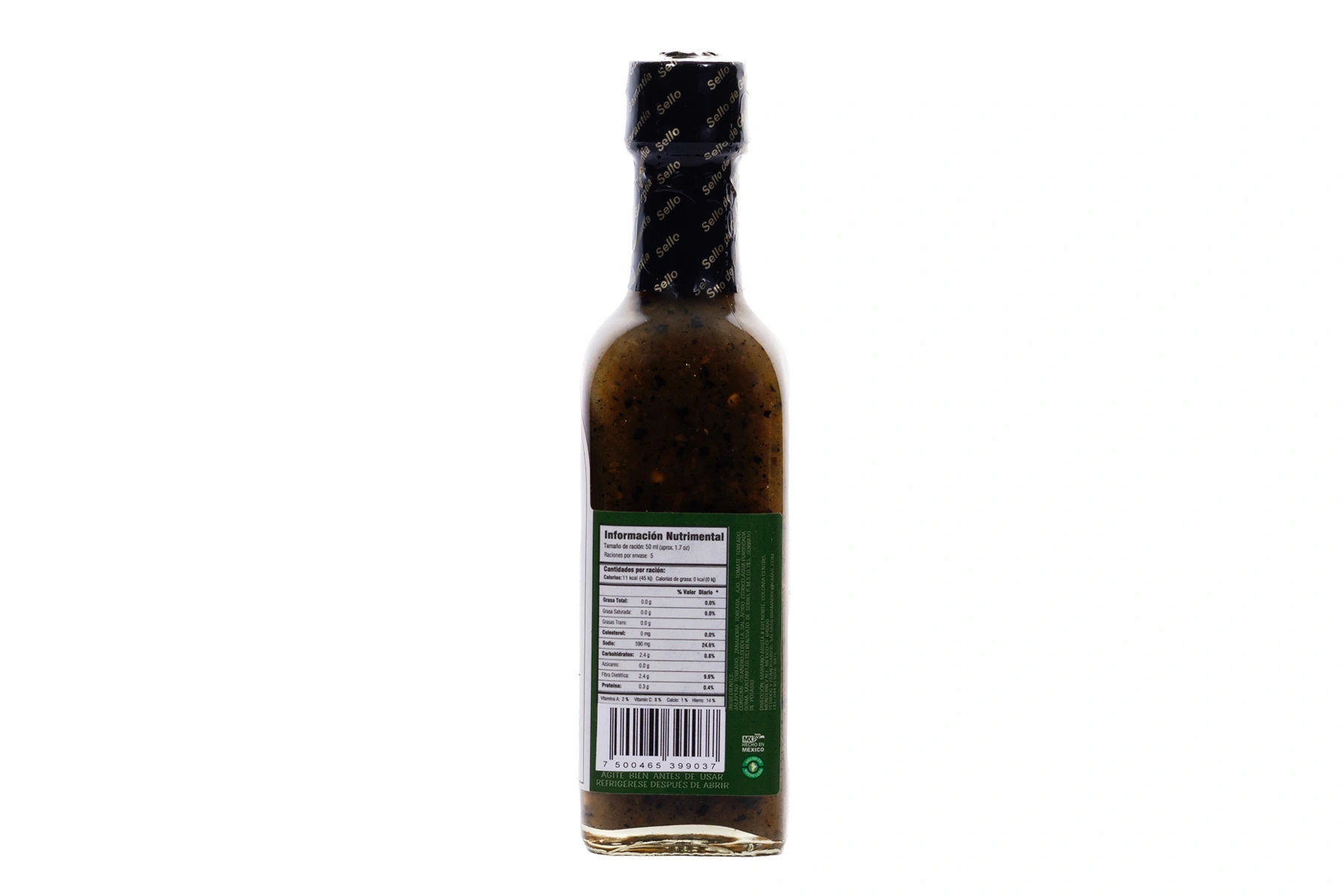Ingredientes: 16kcal (66kj) 3kcal (12) % Valor Diario* 0.4g 0.6% 00g ” 00% 00g 7 00% omg ” 00% 750mg 31.20% 279 09 0.0g 0 279 10.80% 0.4g 05 – 2% – 8% – 1% – 2% Chile Chipotle, Mantequilla, Zanahoria, Ajo, Especias, Jugo de Tomate, Cebolla, Agua Purificada, Sal, Acido Citrico, Goma Xantana (0.1%), Benzoato de Sodio, G.M.S (0.1%), Sorbato dePotasio *Porcentajes de Valores Diarios basados en una dieta de 2,000 calorías, sus valores diarios pueden ser mayores o menores dependiendo de sus necesidades calóricas.